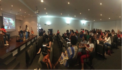 Painel 1: A importância da Arte e Cultura para o Atendimento Socioeducativo”, ministrada por Eleilson Leite, Diretor de Arte e Cultura da Ação Educativa, organização da sociedade civil que desenvolve atividades culturais na Fundação CASA, tendo como debatedora a Professora da Faculdade de Direito da Universidade Federal do Ceará e Coordenadora do Núcleo de Estudos Aplicados Direitos, Infância e Justiça (Nudi-jus), Raquel Coelho.