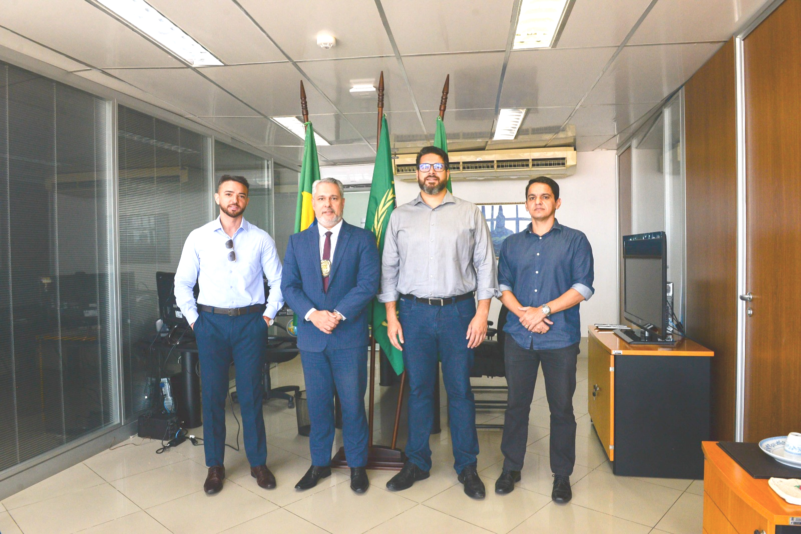 Nesta quarta-feira, 6, os superintendentes da Seas, Roberto Bassan e Marçal Cunha se reuniram na sede da Perícia Forense do Estado do Ceará com o Perito Geral, Júlio Torres, e o coordenador de identificação humana e perícia biométrica, Ricardo Filgueiras. O encontro teve como principal foco a atualização do Acordo de Cooperação Técnica entre essas instituições.