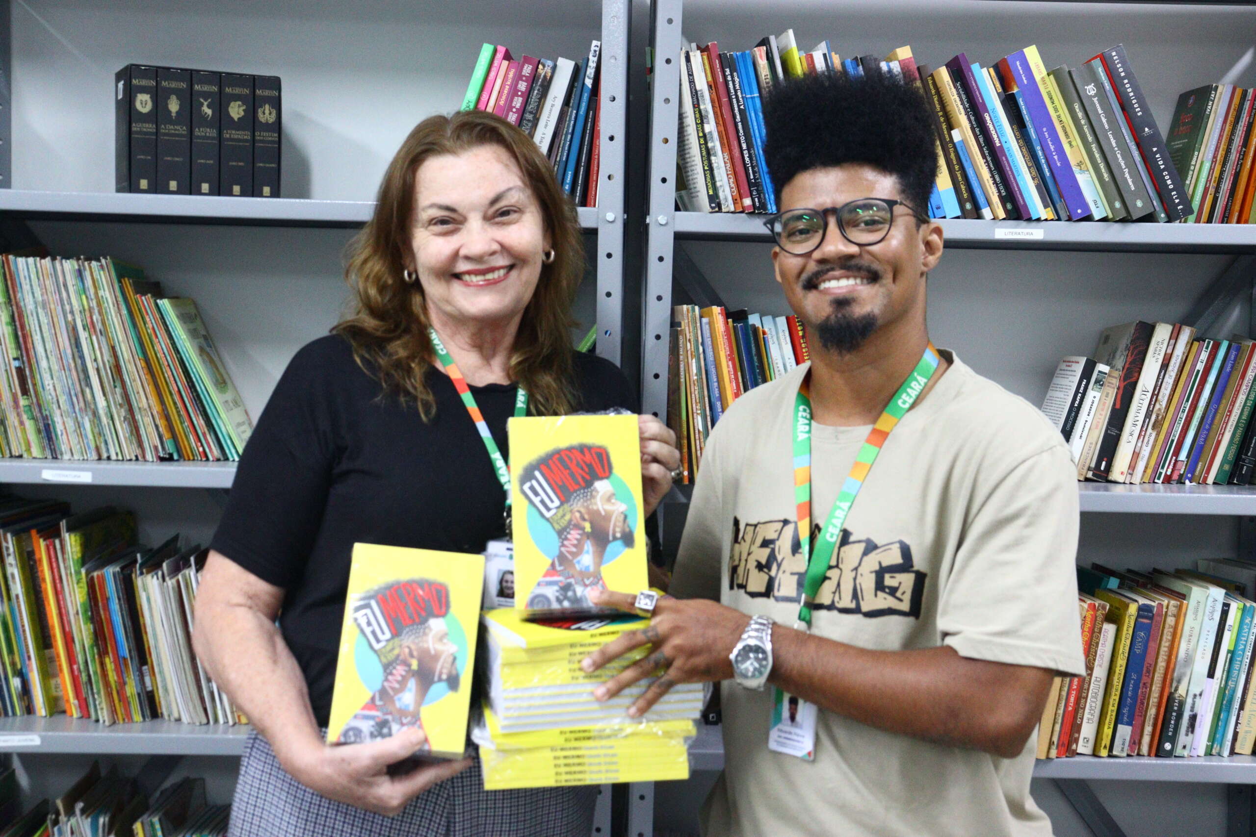 E as doações são sempre bem-vindas. Nesta semana, o escritor e artista Eduardo Africano, assessor do eixo arte, cultura esporte e lazer da Seas, que lançou recentemente o seu segundo livro “Eu Mermo”, fez uma doação de 38 exemplares para serem distribuídos nas bibliotecas nas unidades socioeducativas.