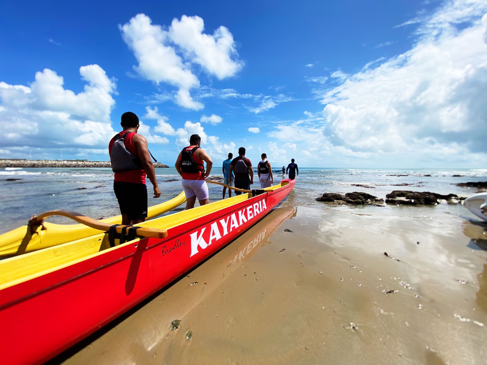 Nem o sol forte, nem a maré seca que antecede a noite de lua cheia, desanimaram os jovens que estavam prestes a entrar no mar em canoas havaianas na Primeira Regata de Canoagem. A ação faz parte do Projeto Canoa Viva, executado pelo Eixo Esporte e Lazer, da Superintendência do Sistema Estadual de Atendimento Socioeducativo (Seas), em parceria com a Kaiakeria.