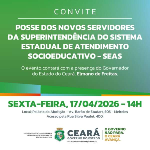 O sistema socioeducativo do Ceará viverá um momento histórico nesta sexta-feira (17), com a posse de 101 analistas socioeducativos. A solenidade será realizada a partir das 14h, no Palácio da Abolição, e contará com a presença do governador Elmano de Freitas, além de outras autoridades estaduais.